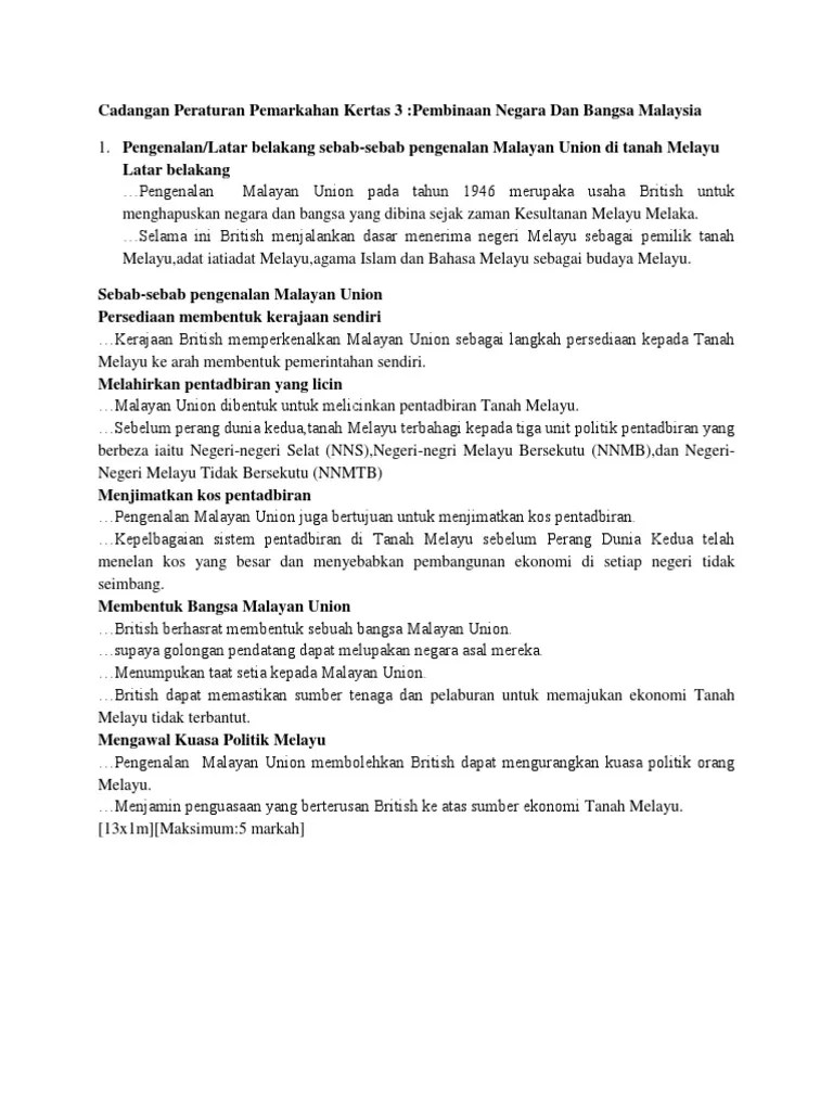 Jawapan Kertas 3 Sejarah Malayan Union Pdf